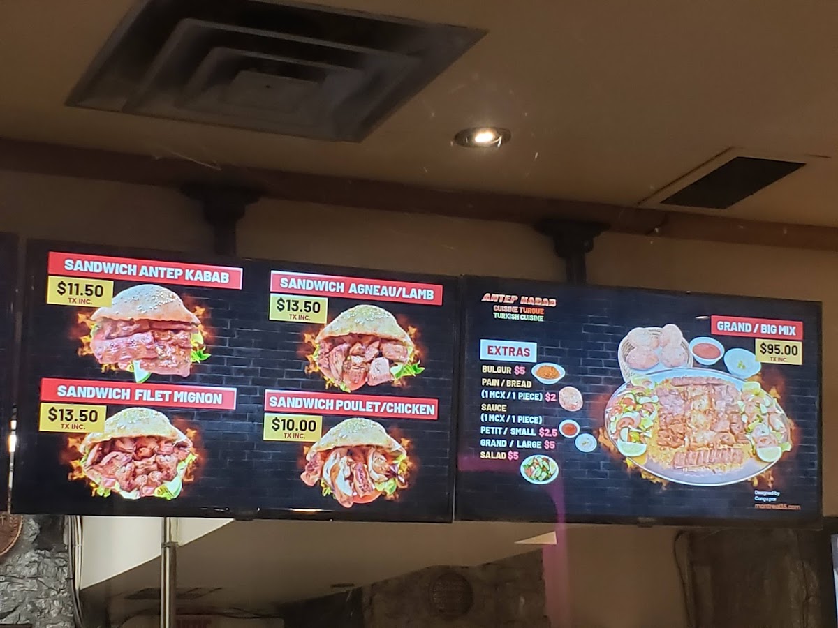 Welcome to Antep Kabab, a delightful Turkish restaurant located at 1626 Maisonneuve Blvd W in Montreal. This culinary gem invites you to experience authentic Turkish flavors in a casual yet warm ambiance. The star of the menu is undoubtedly the freshly made sandwiches, particularly the renowned chicken sandwich, which features tender, flame-grilled chicken packed into light, house-made bread adorned with sesame seeds.